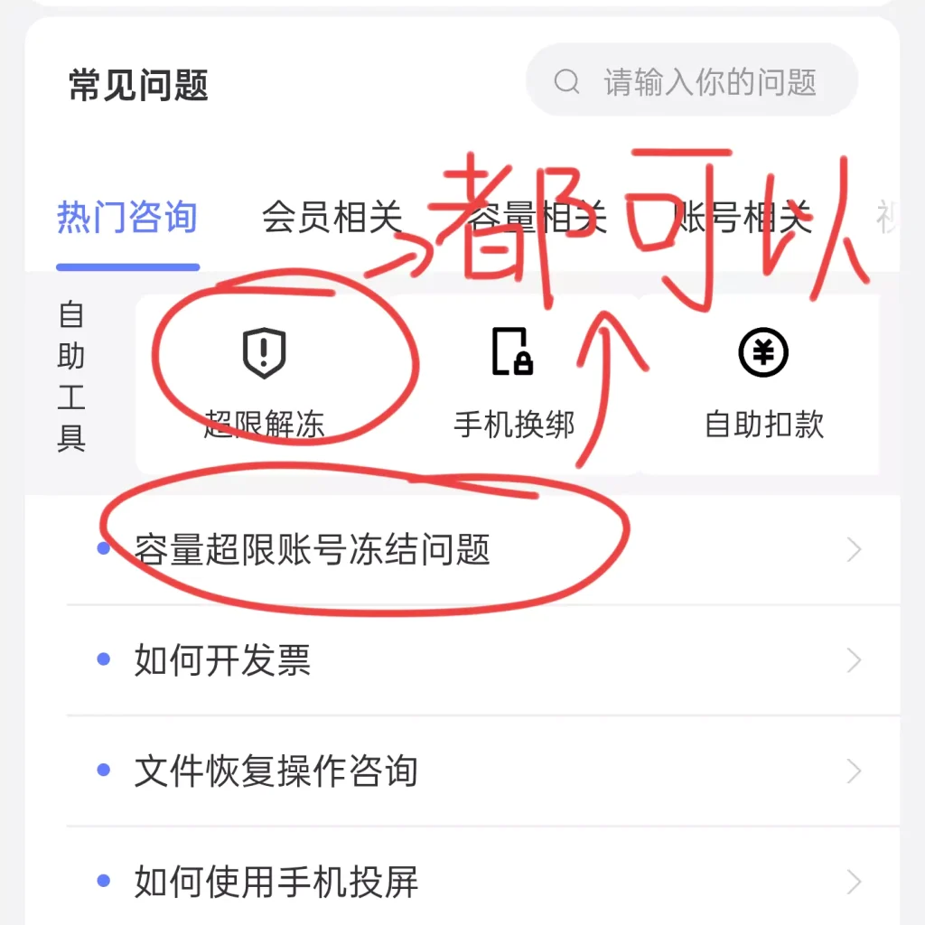 在“热门问题”里,通常第一个或者非常显眼的位置,你就能找到我们此行的最终目标——“容量超限账号冻结问题”这个选项。