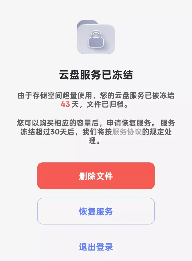 前几天,我像往常一样想打开云盘找点资料,结果一个冰冷的提示框直接怼到我脸上:“您的云盘服务已被冻结”。定睛一看,原来是存储空间超限了。界面上明晃晃地摆着两个选项:要么乖乖掏钱买会员,要么“一键清除”抹掉我辛辛苦苦攒下的所有文件。说实话,那一刻我的心情真是……难以言喻。